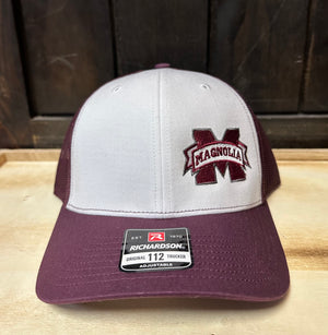 "Magnolia Bulldogs Logo" Maroon Side Panel; White & Maroon Hat (R112)