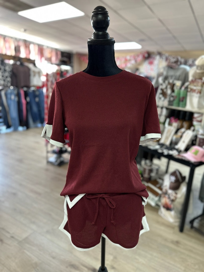 "Maroon & White Hem; Textured" Short Sleeve Set