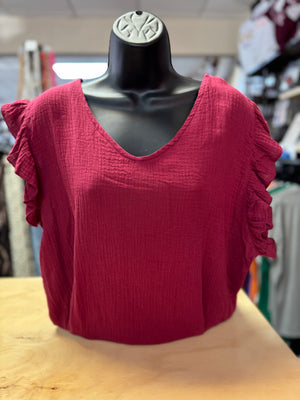 "Peplum Wine V -Neck" Ruffle Sleeve Top