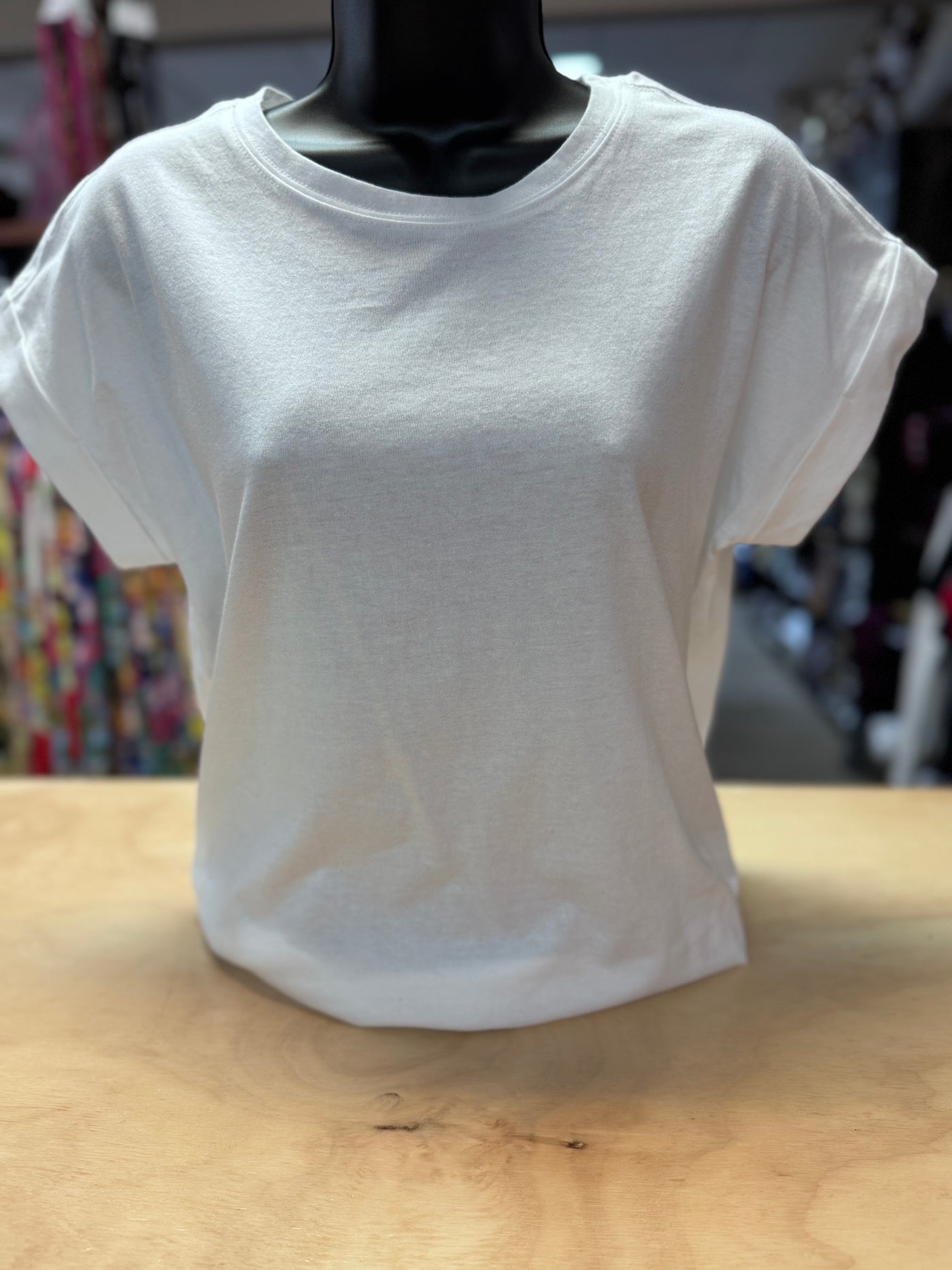 "White Cotton Crew Neck" Short Sleeve T-Shirt Top