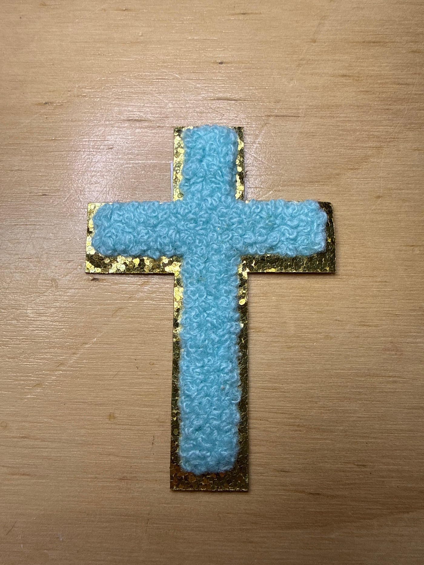 Hat Patches (Chenille)- "Turquoise Cross" (3X2)
