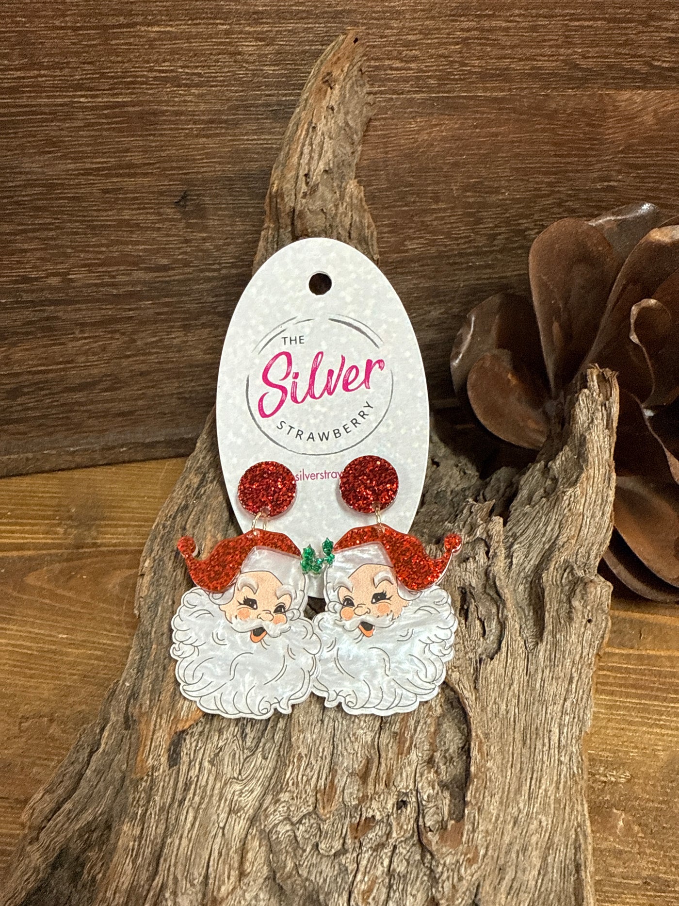 Glossy Acrylic Earrings- "Smiley Santa" Red