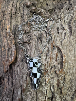Mattie Necklace- "Checkered Lightning Strike" Black & White