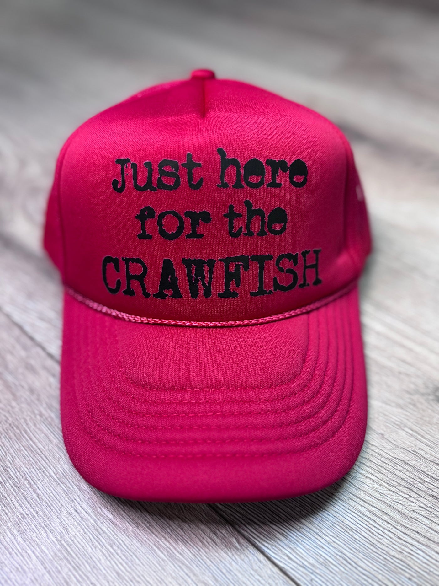 "Just Here For The Crawfish" Red Puffer Trucker Hat
