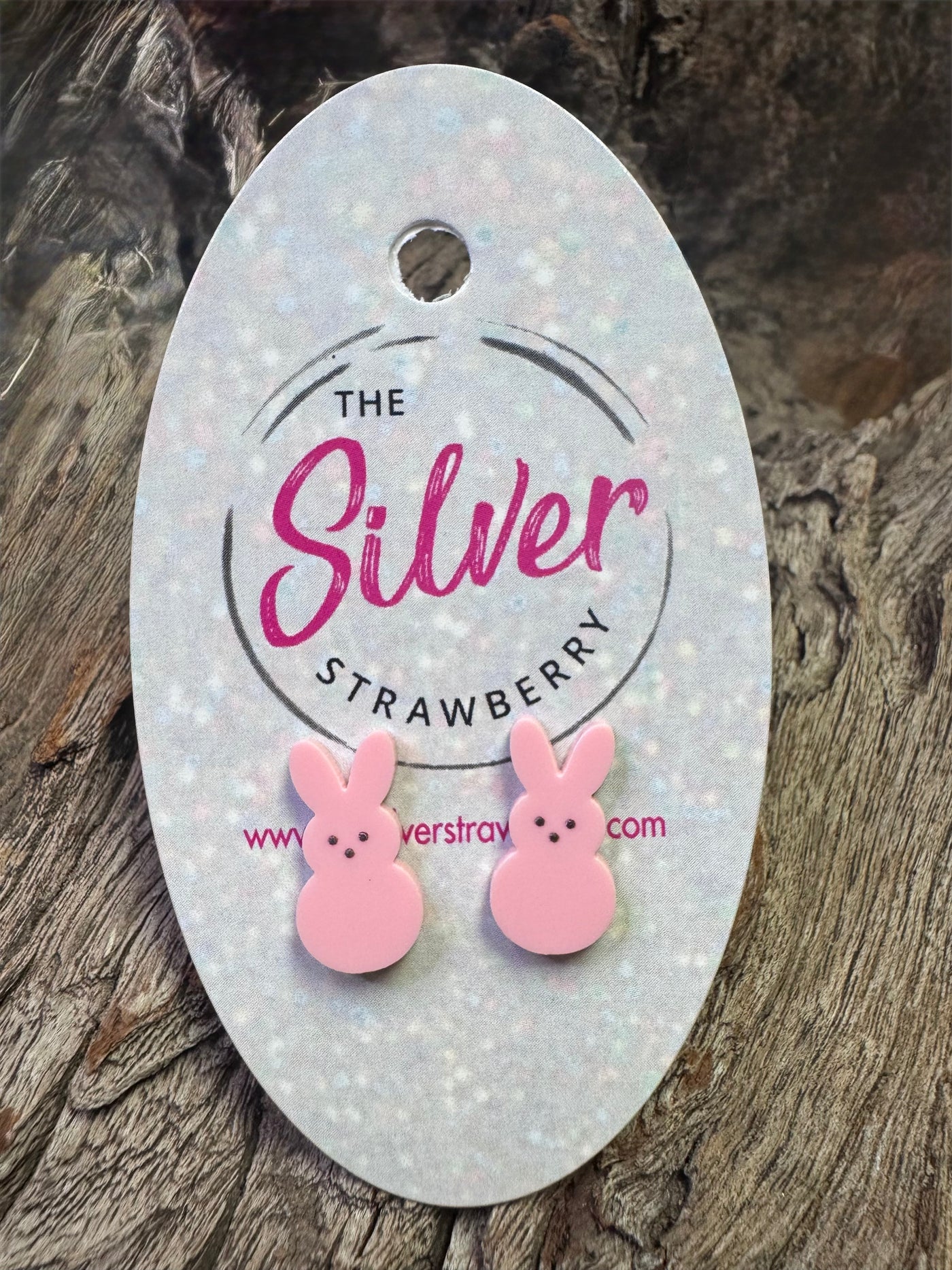 Glossy Acrylic Stud Earrings- "Bunny Peeps" Pink