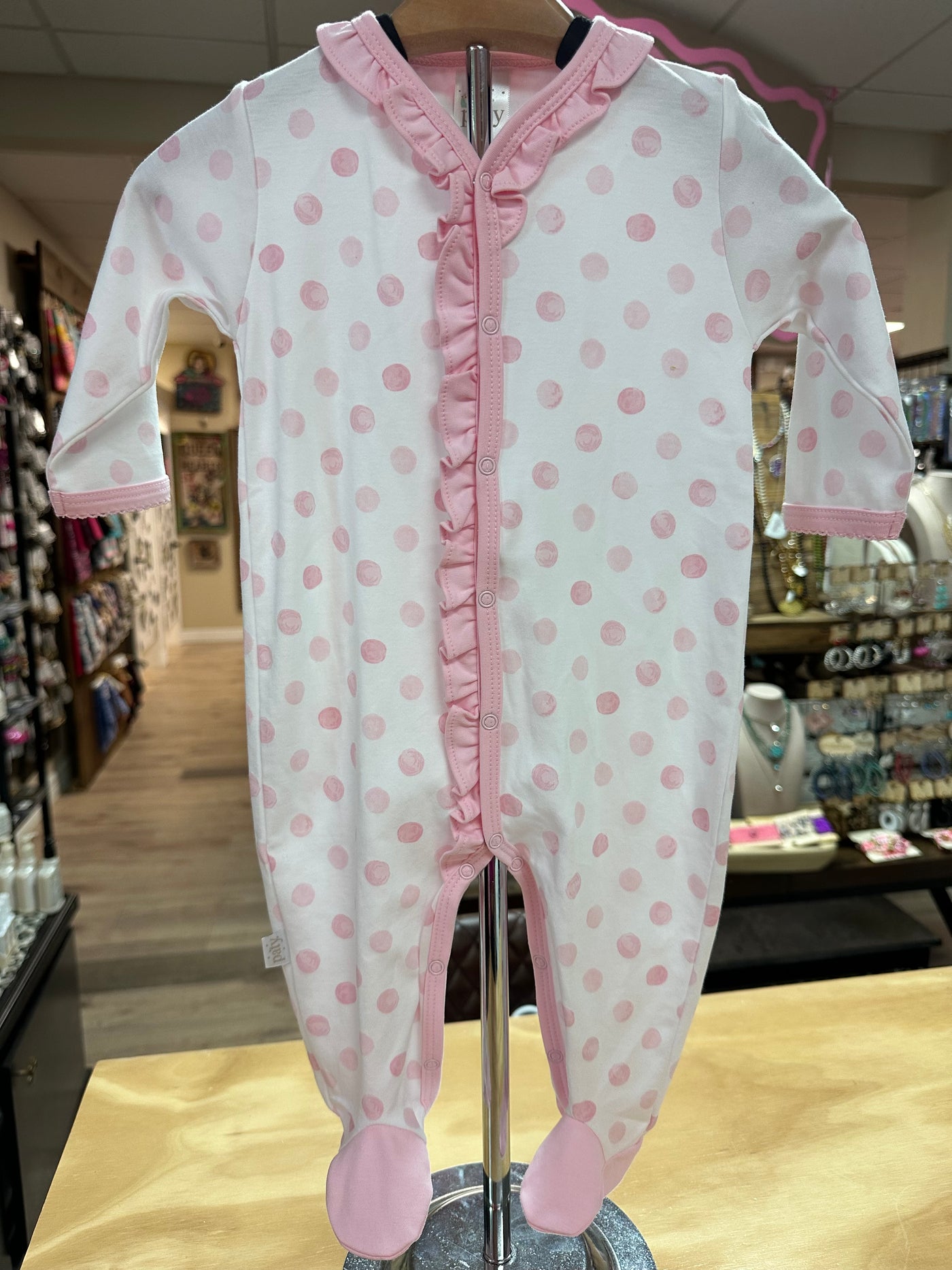 {"id":9142677569772,"title":"Pink \"Polka Dot\" Ruffled Hem-Kid Button Up Sleeper","handle":"pink-polka-dot-ruffled-hem-kid-button-up-sleeper","description":"","published_at":"2026-01-23T14:50:17-06:00","created_at":"2026-01-23T14:50:17-06:00","vendor":"The Silver Strawberry","type":"Kids Romper","tags":["Easter Goodies","Kids Romper"],"price":2495,"price_min":2495,"price_max":2495,"available":true,"price_varies":false,"compare_at_price":0,"compare_at_price_min":0,"compare_at_price_max":0,"compare_at_price_varies":false,"variants":[{"id":47245863256300,"title":"Newborn","option1":"Newborn","option2":null,"option3":null,"sku":null,"requires_shipping":true,"taxable":true,"featured_image":null,"available":true,"name":"Pink \"Polka Dot\" Ruffled Hem-Kid Button Up Sleeper - Newborn","public_title":"Newborn","options":["Newborn"],"price":2495,"weight":0,"compare_at_price":0,"inventory_management":"shopify","barcode":"63256300","requires_selling_plan":false,"selling_plan_allocations":[]},{"id":47245863289068,"title":"3M","option1":"3M","option2":null,"option3":null,"sku":null,"requires_shipping":true,"taxable":true,"featured_image":null,"available":true,"name":"Pink \"Polka Dot\" Ruffled Hem-Kid Button Up Sleeper - 3M","public_title":"3M","options":["3M"],"price":2495,"weight":0,"compare_at_price":0,"inventory_management":"shopify","barcode":"63289068","requires_selling_plan":false,"selling_plan_allocations":[]},{"id":47245863321836,"title":"6M","option1":"6M","option2":null,"option3":null,"sku":null,"requires_shipping":true,"taxable":true,"featured_image":null,"available":true,"name":"Pink \"Polka Dot\" Ruffled Hem-Kid Button Up Sleeper - 6M","public_title":"6M","options":["6M"],"price":2495,"weight":0,"compare_at_price":0,"inventory_management":"shopify","barcode":"63321836","requires_selling_plan":false,"selling_plan_allocations":[]},{"id":47245863354604,"title":"9M","option1":"9M","option2":null,"option3":null,"sku":null,"requires_shipping":true,"taxable":true,"featured_image":null,"available":true,"name":"Pink \"Polka Dot\" Ruffled Hem-Kid Button Up Sleeper - 9M","public_title":"9M","options":["9M"],"price":2495,"weight":0,"compare_at_price":0,"inventory_management":"shopify","barcode":"63354604","requires_selling_plan":false,"selling_plan_allocations":[]}],"images":["\/\/thesilverstrawberry.com\/cdn\/shop\/files\/1AF7670C-F458-4677-948A-930B7946EBBB.jpg?v=1769796048"],"featured_image":"\/\/thesilverstrawberry.com\/cdn\/shop\/files\/1AF7670C-F458-4677-948A-930B7946EBBB.jpg?v=1769796048","options":["Size"],"media":[{"alt":null,"id":36635928756460,"position":1,"preview_image":{"aspect_ratio":0.75,"height":4032,"width":3024,"src":"\/\/thesilverstrawberry.com\/cdn\/shop\/files\/1AF7670C-F458-4677-948A-930B7946EBBB.jpg?v=1769796048"},"aspect_ratio":0.75,"height":4032,"media_type":"image","src":"\/\/thesilverstrawberry.com\/cdn\/shop\/files\/1AF7670C-F458-4677-948A-930B7946EBBB.jpg?v=1769796048","width":3024}],"requires_selling_plan":false,"selling_plan_groups":[],"content":""}