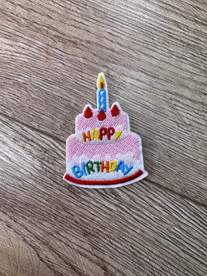 Hat Patches (Embroidered)- "Happy Birthday Cake; Pink (1.5X2)