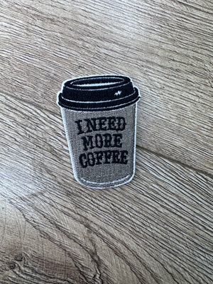 Hat Patches (Embroidered)- "I Need More Coffee" (2X2.5)