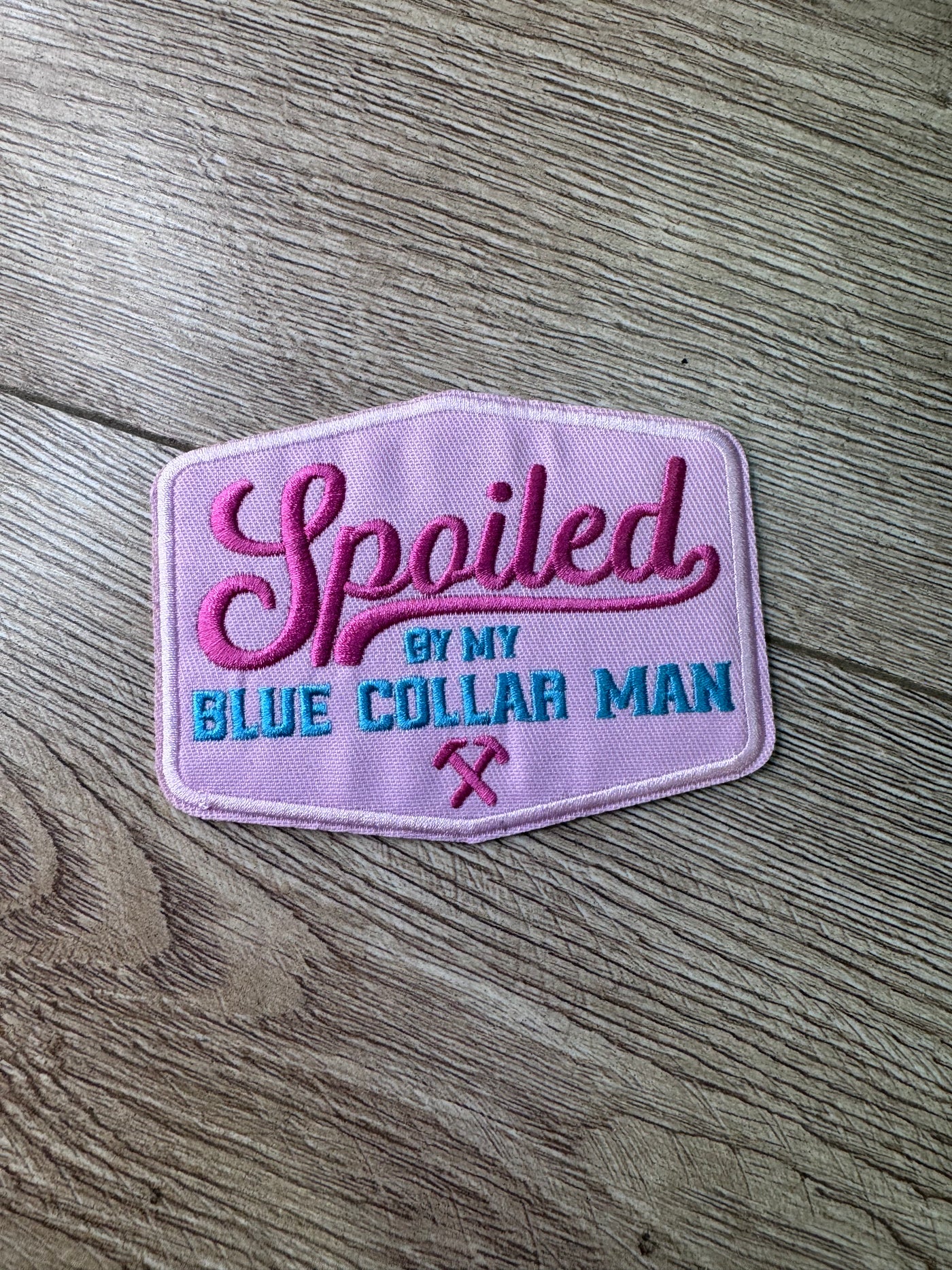 Hat Patches (Embroidered)- "Spoiled By My Blue Collar Man" (4X3)