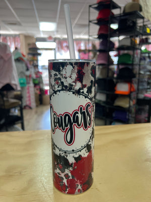 Skinny Tumbler- "Cougars" Red Cheetah