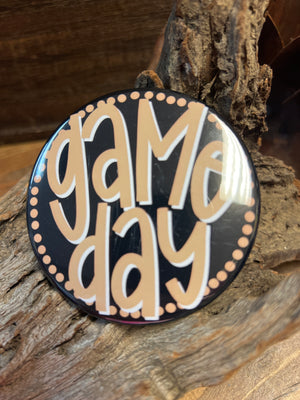 Button Pins- "Gameday" Gold & Black Polka Dots; Black Background