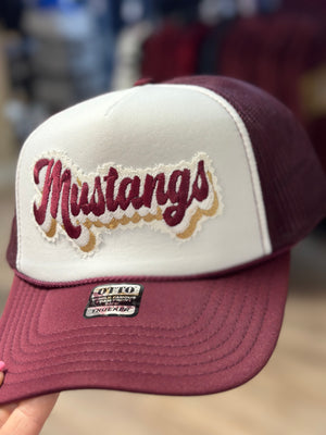 "Groovy Triple Mustangs" White & Maroon Puffy Hat