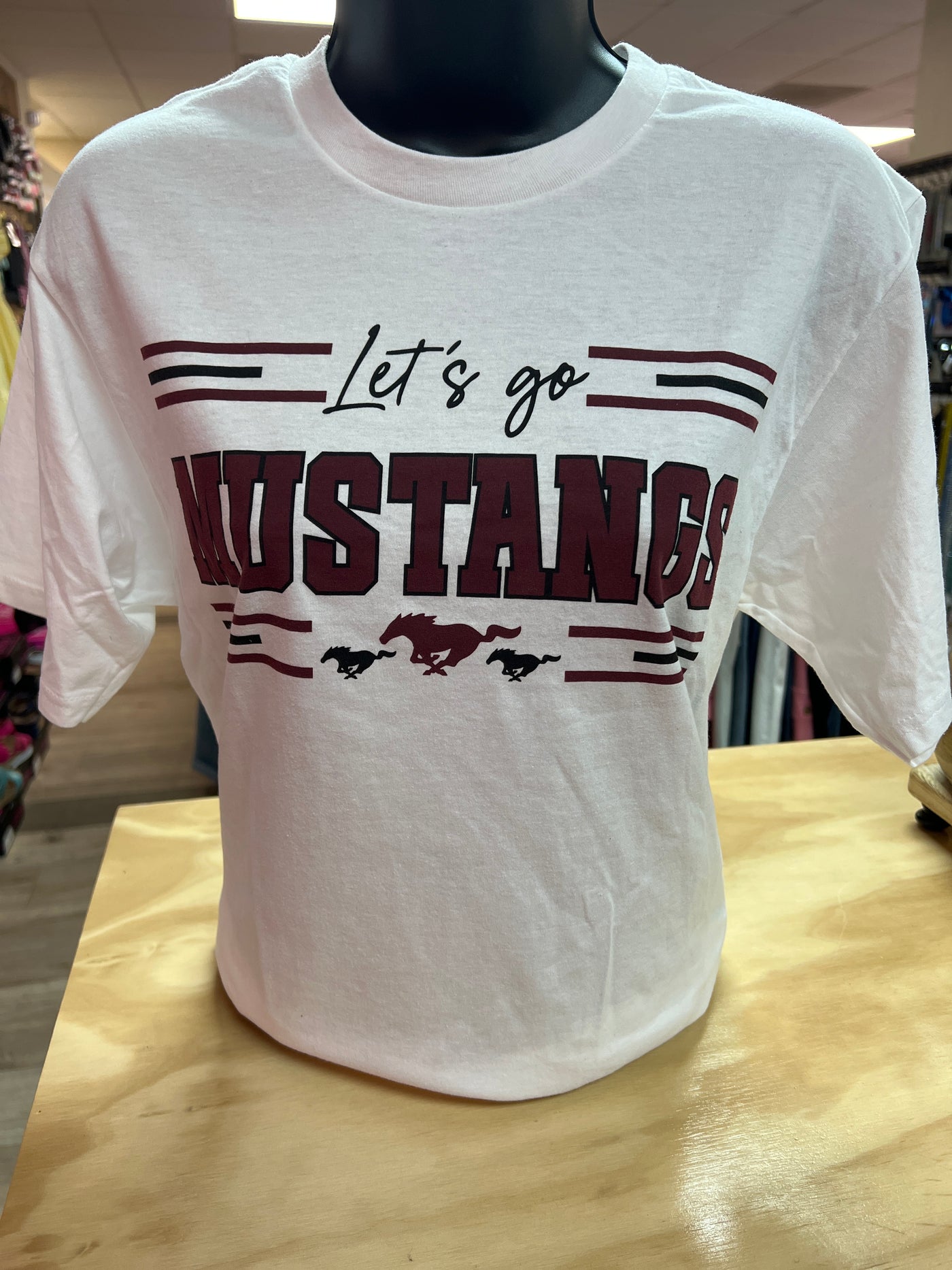 Mustangs Tee- "Let's Go Mustangs" Lines & Mustangs; White