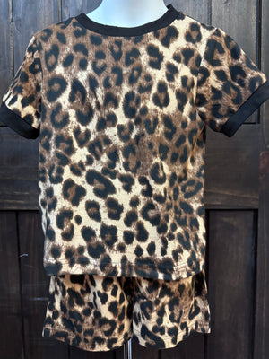 "Brown Leopard W/ Black Trim" Top & Short Set