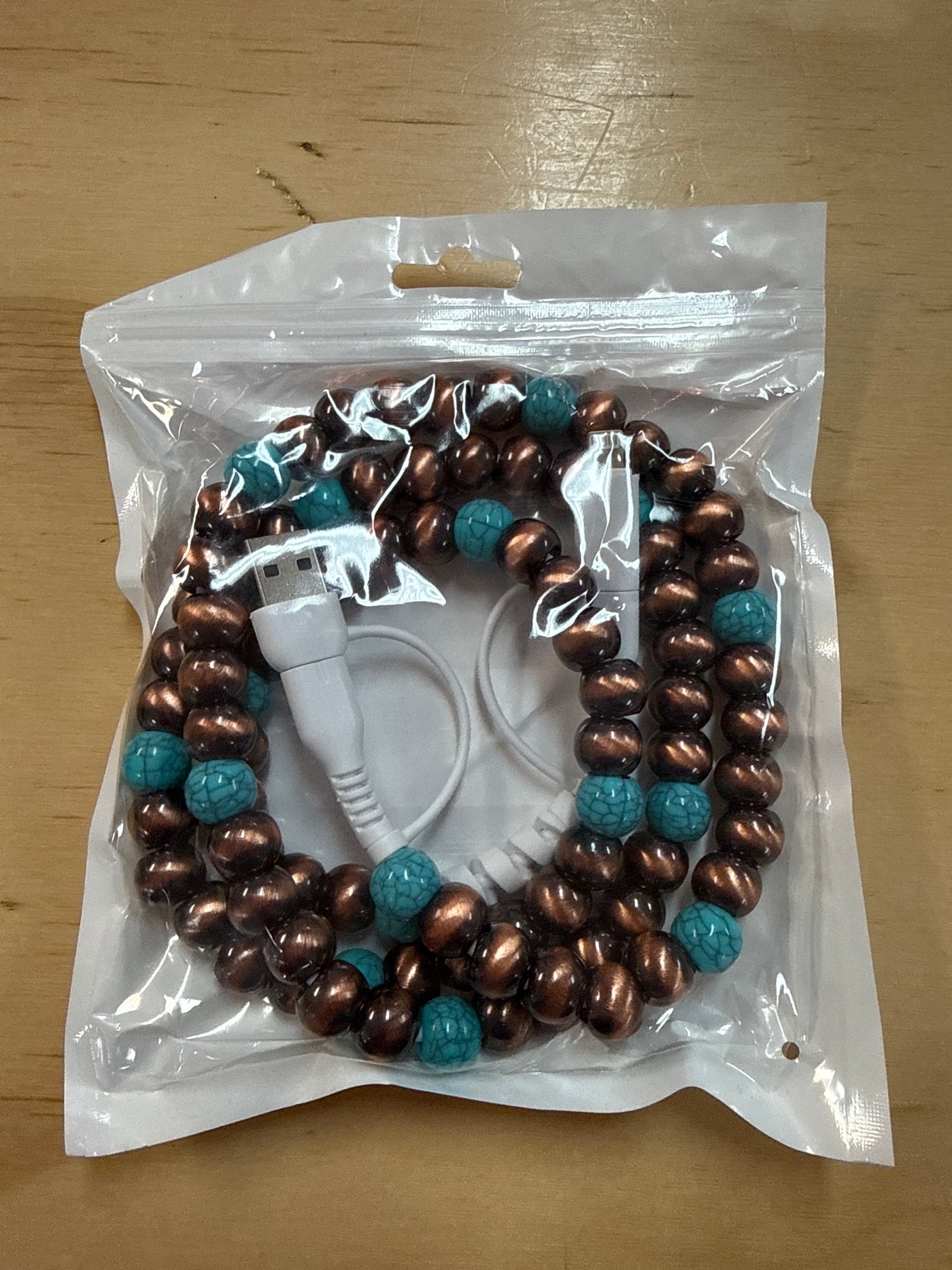 Phone Chargers- "Bronze & Turquoise" Beaded