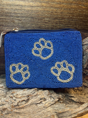Coin Purse Wallet- Silver Paw Print x3; Navy