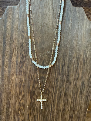 Wanderlust Necklace- "Eve Cross Layered" Gold & Pearls