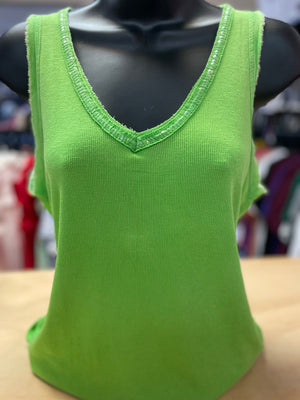 "Lime Green Sequins" Double Frayed Tank Top