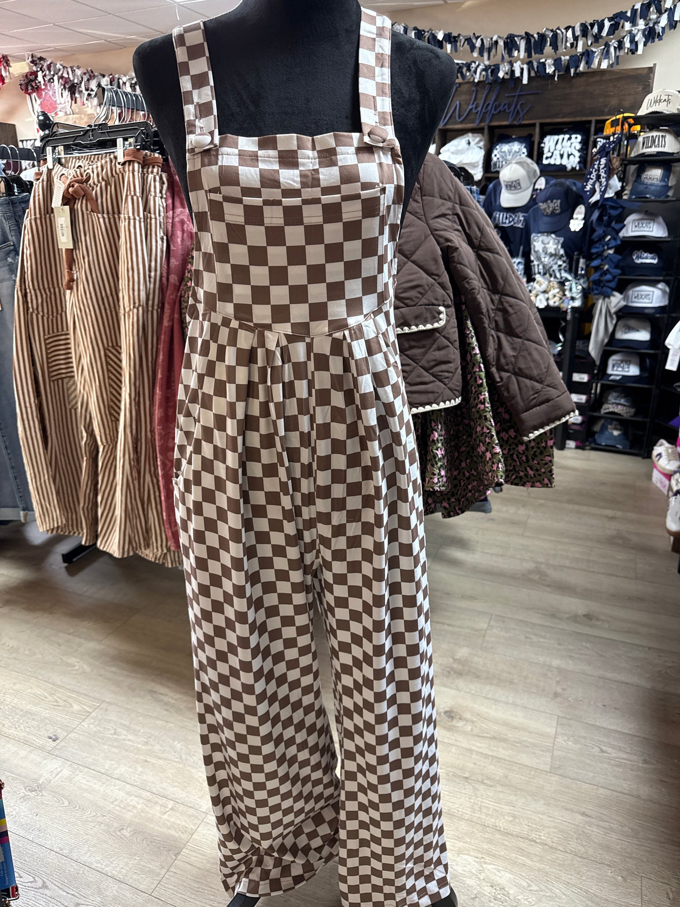 {"id":9061376262380,"title":"\"Brown \u0026 Cream Checkered\" Pant Overall","handle":"brown-cream-checkered-pant-overall","description":"","published_at":"2025-10-31T12:21:43-05:00","created_at":"2025-10-31T12:21:44-05:00","vendor":"The Silver Strawberry","type":"Women's Rompers","tags":["Short Rompers","Thanksgiving Goodies"],"price":6995,"price_min":6995,"price_max":6995,"available":true,"price_varies":false,"compare_at_price":0,"compare_at_price_min":0,"compare_at_price_max":0,"compare_at_price_varies":false,"variants":[{"id":46936891621612,"title":"Small","option1":"Small","option2":null,"option3":null,"sku":"POBWCMCS","requires_shipping":true,"taxable":true,"featured_image":null,"available":true,"name":"\"Brown \u0026 Cream Checkered\" Pant Overall - Small","public_title":"Small","options":["Small"],"price":6995,"weight":0,"compare_at_price":0,"inventory_management":"shopify","barcode":"91621612","requires_selling_plan":false,"selling_plan_allocations":[]},{"id":46936891654380,"title":"Medium","option1":"Medium","option2":null,"option3":null,"sku":"POBWCMCM","requires_shipping":true,"taxable":true,"featured_image":null,"available":true,"name":"\"Brown \u0026 Cream Checkered\" Pant Overall - Medium","public_title":"Medium","options":["Medium"],"price":6995,"weight":0,"compare_at_price":0,"inventory_management":"shopify","barcode":"91654380","requires_selling_plan":false,"selling_plan_allocations":[]},{"id":46936891687148,"title":"Large","option1":"Large","option2":null,"option3":null,"sku":"POBWCMCL","requires_shipping":true,"taxable":true,"featured_image":null,"available":false,"name":"\"Brown \u0026 Cream Checkered\" Pant Overall - Large","public_title":"Large","options":["Large"],"price":6995,"weight":0,"compare_at_price":0,"inventory_management":"shopify","barcode":"91687148","requires_selling_plan":false,"selling_plan_allocations":[]},{"id":46936891719916,"title":"X-Large","option1":"X-Large","option2":null,"option3":null,"sku":"POBWCMCXL","requires_shipping":true,"taxable":true,"featured_image":null,"available":true,"name":"\"Brown \u0026 Cream Checkered\" Pant Overall - X-Large","public_title":"X-Large","options":["X-Large"],"price":6995,"weight":0,"compare_at_price":0,"inventory_management":"shopify","barcode":"91719916","requires_selling_plan":false,"selling_plan_allocations":[]}],"images":["\/\/thesilverstrawberry.com\/cdn\/shop\/files\/62D0C86A-E073-4598-804C-380573B180EA.jpg?v=1762379507"],"featured_image":"\/\/thesilverstrawberry.com\/cdn\/shop\/files\/62D0C86A-E073-4598-804C-380573B180EA.jpg?v=1762379507","options":["Size"],"media":[{"alt":null,"id":36223789039852,"position":1,"preview_image":{"aspect_ratio":0.75,"height":4032,"width":3024,"src":"\/\/thesilverstrawberry.com\/cdn\/shop\/files\/62D0C86A-E073-4598-804C-380573B180EA.jpg?v=1762379507"},"aspect_ratio":0.75,"height":4032,"media_type":"image","src":"\/\/thesilverstrawberry.com\/cdn\/shop\/files\/62D0C86A-E073-4598-804C-380573B180EA.jpg?v=1762379507","width":3024}],"requires_selling_plan":false,"selling_plan_groups":[],"content":""}