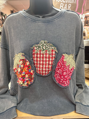 "Strawberry Quilted Patches; Blueberry" Long Sleeve Top