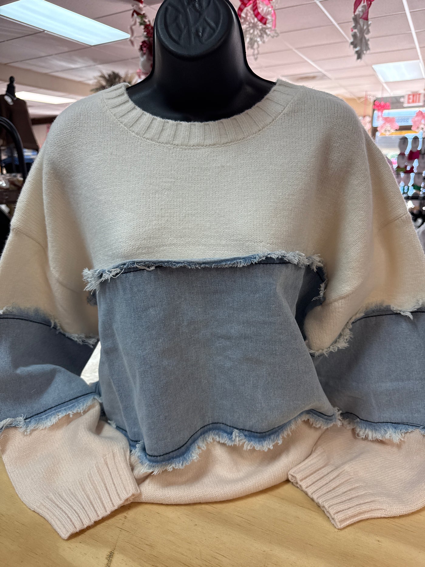 {"id":9063675035884,"title":"\"Triple Denim \u0026 Pink\" Sweater Top","handle":"triple-denim-pink-sweater-top","description":"","published_at":"2025-11-03T14:21:29-06:00","created_at":"2025-11-03T14:21:29-06:00","vendor":"The Silver Strawberry","type":"Tops","tags":["Women's Tops"],"price":5995,"price_min":5995,"price_max":5995,"available":false,"price_varies":false,"compare_at_price":null,"compare_at_price_min":0,"compare_at_price_max":0,"compare_at_price_varies":false,"variants":[{"id":46943372673260,"title":"Small","option1":"Small","option2":null,"option3":null,"sku":"TopTDPSS","requires_shipping":true,"taxable":true,"featured_image":null,"available":false,"name":"\"Triple Denim \u0026 Pink\" Sweater Top - Small","public_title":"Small","options":["Small"],"price":5995,"weight":0,"compare_at_price":null,"inventory_management":"shopify","barcode":"72673260","requires_selling_plan":false,"selling_plan_allocations":[]},{"id":46943372706028,"title":"Medium","option1":"Medium","option2":null,"option3":null,"sku":"TopTDPSM","requires_shipping":true,"taxable":true,"featured_image":null,"available":false,"name":"\"Triple Denim \u0026 Pink\" Sweater Top - Medium","public_title":"Medium","options":["Medium"],"price":5995,"weight":0,"compare_at_price":null,"inventory_management":"shopify","barcode":"72706028","requires_selling_plan":false,"selling_plan_allocations":[]},{"id":46943372738796,"title":"Large","option1":"Large","option2":null,"option3":null,"sku":"TopTDPSL","requires_shipping":true,"taxable":true,"featured_image":null,"available":false,"name":"\"Triple Denim \u0026 Pink\" Sweater Top - Large","public_title":"Large","options":["Large"],"price":5995,"weight":0,"compare_at_price":null,"inventory_management":"shopify","barcode":"72738796","requires_selling_plan":false,"selling_plan_allocations":[]}],"images":["\/\/thesilverstrawberry.com\/cdn\/shop\/files\/F9B8EF2C-3A6A-4691-B1DB-9A0E773C96C0.jpg?v=1762378410"],"featured_image":"\/\/thesilverstrawberry.com\/cdn\/shop\/files\/F9B8EF2C-3A6A-4691-B1DB-9A0E773C96C0.jpg?v=1762378410","options":["Size"],"media":[{"alt":null,"id":36223723110636,"position":1,"preview_image":{"aspect_ratio":0.75,"height":4032,"width":3024,"src":"\/\/thesilverstrawberry.com\/cdn\/shop\/files\/F9B8EF2C-3A6A-4691-B1DB-9A0E773C96C0.jpg?v=1762378410"},"aspect_ratio":0.75,"height":4032,"media_type":"image","src":"\/\/thesilverstrawberry.com\/cdn\/shop\/files\/F9B8EF2C-3A6A-4691-B1DB-9A0E773C96C0.jpg?v=1762378410","width":3024}],"requires_selling_plan":false,"selling_plan_groups":[],"content":""}