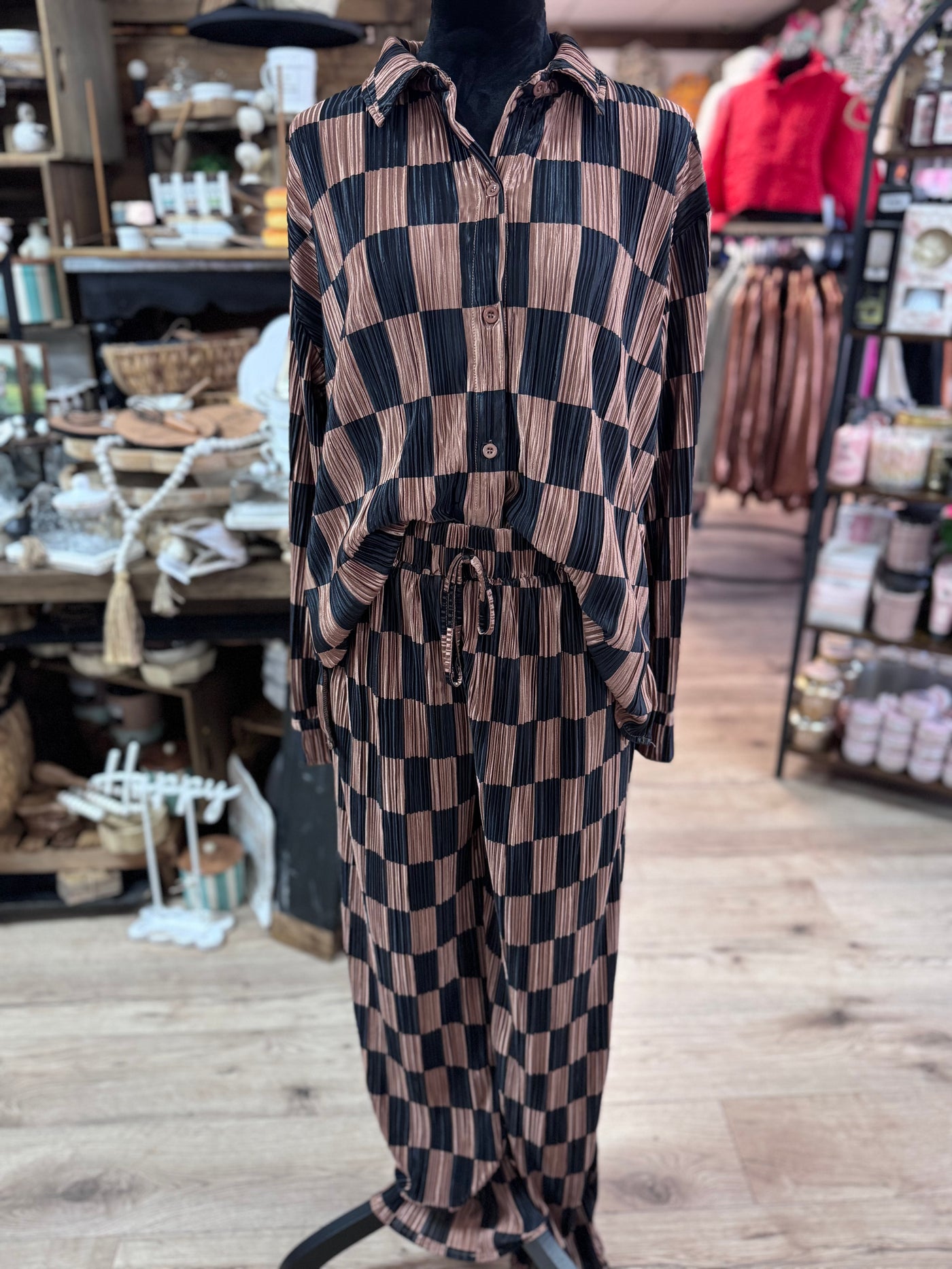 "Black & Brown Checkered" Press Pleated 2-Piece Pant Set
