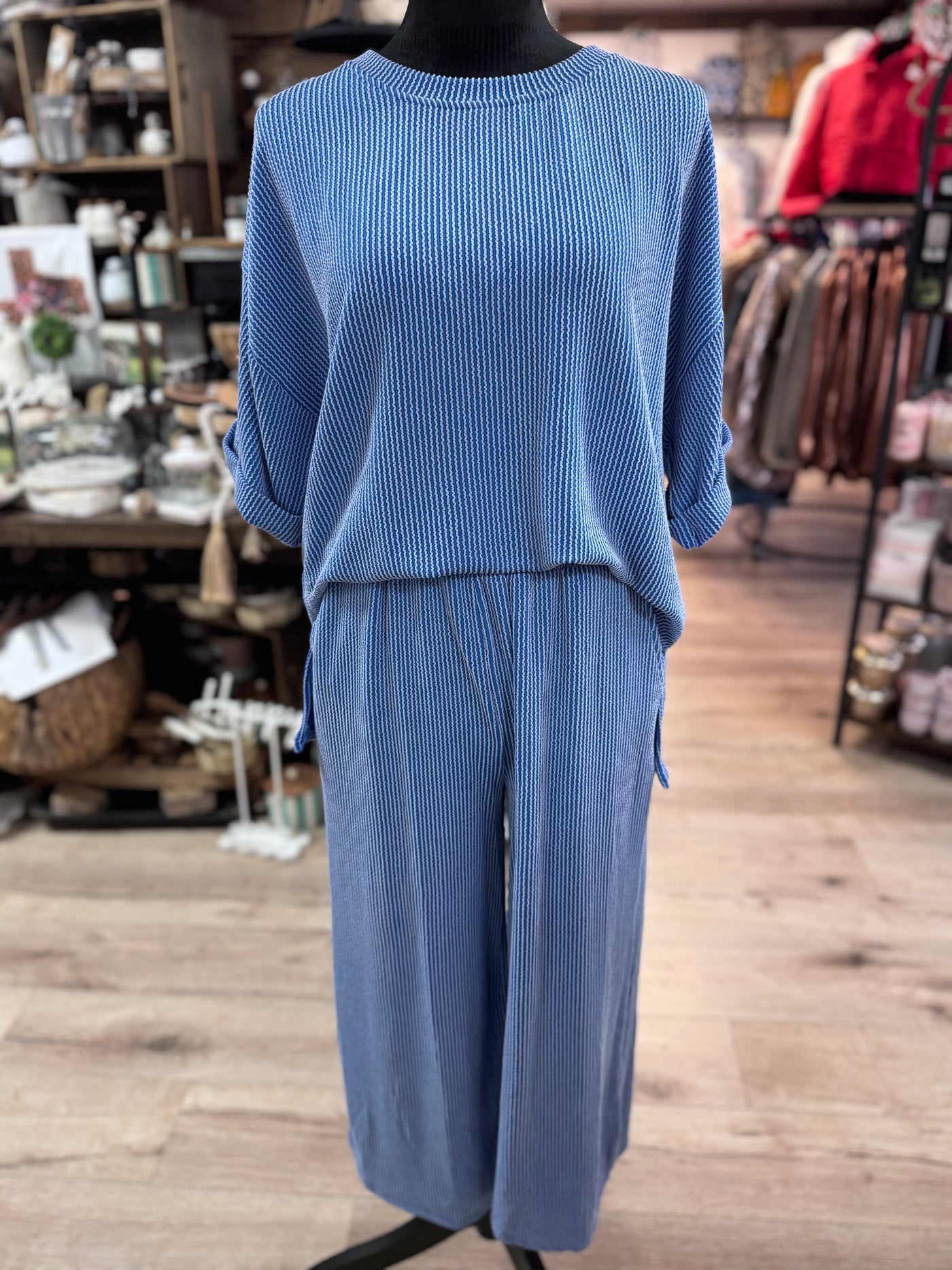 {"id":8766831886572,"title":"Navy \"Ribbed; Short Sleeve\" 2-Piece Pant Set","handle":"blue-ribbed-short-sleeve-2-piece-pant-set","description":"","published_at":"2025-01-08T14:01:50-06:00","created_at":"2025-01-08T14:01:50-06:00","vendor":"The Silver Strawberry","type":"Two-Piece Sets","tags":["Two-Piece Sets"],"price":7995,"price_min":7995,"price_max":7995,"available":true,"price_varies":false,"compare_at_price":null,"compare_at_price_min":0,"compare_at_price_max":0,"compare_at_price_varies":false,"variants":[{"id":46082422800620,"title":"Small","option1":"Small","option2":null,"option3":null,"sku":"SSPBRSSS","requires_shipping":true,"taxable":true,"featured_image":null,"available":true,"name":"Navy \"Ribbed; Short Sleeve\" 2-Piece Pant Set - Small","public_title":"Small","options":["Small"],"price":7995,"weight":0,"compare_at_price":null,"inventory_management":"shopify","barcode":"22800620","requires_selling_plan":false,"selling_plan_allocations":[]},{"id":46082422833388,"title":"Medium","option1":"Medium","option2":null,"option3":null,"sku":"SSPBRSSM","requires_shipping":true,"taxable":true,"featured_image":null,"available":false,"name":"Navy \"Ribbed; Short Sleeve\" 2-Piece Pant Set - Medium","public_title":"Medium","options":["Medium"],"price":7995,"weight":0,"compare_at_price":null,"inventory_management":"shopify","barcode":"22833388","requires_selling_plan":false,"selling_plan_allocations":[]},{"id":46082422866156,"title":"Large","option1":"Large","option2":null,"option3":null,"sku":"SSPBRSSL","requires_shipping":true,"taxable":true,"featured_image":null,"available":true,"name":"Navy \"Ribbed; Short Sleeve\" 2-Piece Pant Set - Large","public_title":"Large","options":["Large"],"price":7995,"weight":0,"compare_at_price":null,"inventory_management":"shopify","barcode":"22866156","requires_selling_plan":false,"selling_plan_allocations":[]},{"id":47277515276524,"title":"X-Large","option1":"X-Large","option2":null,"option3":null,"sku":null,"requires_shipping":true,"taxable":true,"featured_image":null,"available":true,"name":"Navy \"Ribbed; Short Sleeve\" 2-Piece Pant Set - X-Large","public_title":"X-Large","options":["X-Large"],"price":7995,"weight":0,"compare_at_price":null,"inventory_management":"shopify","barcode":"15276524","requires_selling_plan":false,"selling_plan_allocations":[]}],"images":["\/\/thesilverstrawberry.com\/cdn\/shop\/files\/AECB9C41-87D6-4E9C-A869-681BF2E52471.jpg?v=1740062789"],"featured_image":"\/\/thesilverstrawberry.com\/cdn\/shop\/files\/AECB9C41-87D6-4E9C-A869-681BF2E52471.jpg?v=1740062789","options":["Size"],"media":[{"alt":null,"id":34977249296620,"position":1,"preview_image":{"aspect_ratio":0.75,"height":5712,"width":4284,"src":"\/\/thesilverstrawberry.com\/cdn\/shop\/files\/AECB9C41-87D6-4E9C-A869-681BF2E52471.jpg?v=1740062789"},"aspect_ratio":0.75,"height":5712,"media_type":"image","src":"\/\/thesilverstrawberry.com\/cdn\/shop\/files\/AECB9C41-87D6-4E9C-A869-681BF2E52471.jpg?v=1740062789","width":4284}],"requires_selling_plan":false,"selling_plan_groups":[],"content":""}
