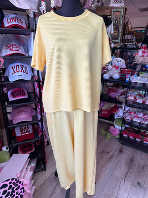 {"id":9150753276140,"title":"Yellow \"Ribbed; Short Sleeve\" 2-Piece Pant Set","handle":"yellow-ribbed-short-sleeve-2-piece-pant-set","description":"","published_at":"2026-02-04T14:09:24-06:00","created_at":"2026-02-04T14:09:24-06:00","vendor":"The Silver Strawberry","type":"Two-Piece Sets","tags":["Two-Piece Sets"],"price":7995,"price_min":7995,"price_max":7995,"available":true,"price_varies":false,"compare_at_price":null,"compare_at_price_min":0,"compare_at_price_max":0,"compare_at_price_varies":false,"variants":[{"id":47277509771500,"title":"Small","option1":"Small","option2":null,"option3":null,"sku":null,"requires_shipping":true,"taxable":true,"featured_image":null,"available":false,"name":"Yellow \"Ribbed; Short Sleeve\" 2-Piece Pant Set - Small","public_title":"Small","options":["Small"],"price":7995,"weight":0,"compare_at_price":null,"inventory_management":"shopify","barcode":"09771500","requires_selling_plan":false,"selling_plan_allocations":[]},{"id":47277509804268,"title":"Medium","option1":"Medium","option2":null,"option3":null,"sku":null,"requires_shipping":true,"taxable":true,"featured_image":null,"available":true,"name":"Yellow \"Ribbed; Short Sleeve\" 2-Piece Pant Set - Medium","public_title":"Medium","options":["Medium"],"price":7995,"weight":0,"compare_at_price":null,"inventory_management":"shopify","barcode":"09804268","requires_selling_plan":false,"selling_plan_allocations":[]},{"id":47277509837036,"title":"Large","option1":"Large","option2":null,"option3":null,"sku":null,"requires_shipping":true,"taxable":true,"featured_image":null,"available":true,"name":"Yellow \"Ribbed; Short Sleeve\" 2-Piece Pant Set - Large","public_title":"Large","options":["Large"],"price":7995,"weight":0,"compare_at_price":null,"inventory_management":"shopify","barcode":"09837036","requires_selling_plan":false,"selling_plan_allocations":[]},{"id":47277509869804,"title":"X-Large","option1":"X-Large","option2":null,"option3":null,"sku":null,"requires_shipping":true,"taxable":true,"featured_image":null,"available":true,"name":"Yellow \"Ribbed; Short Sleeve\" 2-Piece Pant Set - X-Large","public_title":"X-Large","options":["X-Large"],"price":7995,"weight":0,"compare_at_price":null,"inventory_management":"shopify","barcode":"09869804","requires_selling_plan":false,"selling_plan_allocations":[]}],"images":["\/\/thesilverstrawberry.com\/cdn\/shop\/files\/49E8A7A7-8550-4CE4-A44B-C0F842502E3D.jpg?v=1770656200"],"featured_image":"\/\/thesilverstrawberry.com\/cdn\/shop\/files\/49E8A7A7-8550-4CE4-A44B-C0F842502E3D.jpg?v=1770656200","options":["Size"],"media":[{"alt":null,"id":36685173883116,"position":1,"preview_image":{"aspect_ratio":0.75,"height":4032,"width":3024,"src":"\/\/thesilverstrawberry.com\/cdn\/shop\/files\/49E8A7A7-8550-4CE4-A44B-C0F842502E3D.jpg?v=1770656200"},"aspect_ratio":0.75,"height":4032,"media_type":"image","src":"\/\/thesilverstrawberry.com\/cdn\/shop\/files\/49E8A7A7-8550-4CE4-A44B-C0F842502E3D.jpg?v=1770656200","width":3024}],"requires_selling_plan":false,"selling_plan_groups":[],"content":""}
