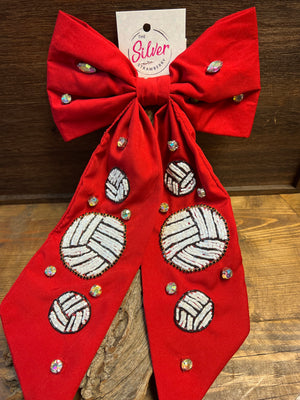 Coco Bow- "Volleyball; Red & White" Rhinestones