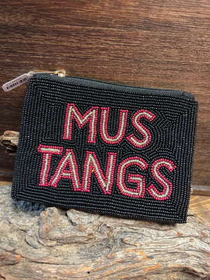 Coin Purse Wallet- Beaded "Mustangs" Black w/ Maroon & Gold Words