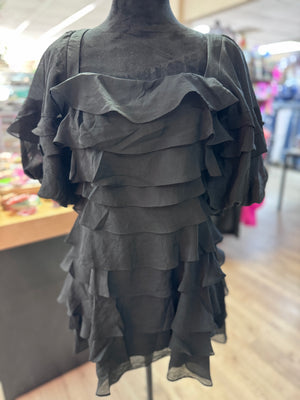 "Black Tiered Ruffle" Layered Mini Dress