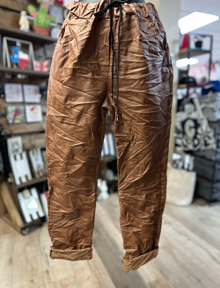 {"id":8698311540972,"title":"Casual Comfy Pants- \"Leather\" Brown","handle":"casual-comfy-pants-leather-brown","description":"Made In Italy!!!","published_at":"2024-10-25T14:19:40-05:00","created_at":"2024-10-25T14:19:40-05:00","vendor":"The Silver Strawberry","type":"Pants","tags":["Women's Pants"],"price":6995,"price_min":6995,"price_max":6995,"available":true,"price_varies":false,"compare_at_price":null,"compare_at_price_min":0,"compare_at_price_max":0,"compare_at_price_varies":false,"variants":[{"id":45852546728172,"title":"One Size","option1":"One Size","option2":null,"option3":null,"sku":"PantsCCPLBOS","requires_shipping":true,"taxable":true,"featured_image":null,"available":true,"name":"Casual Comfy Pants- \"Leather\" Brown - One Size","public_title":"One Size","options":["One Size"],"price":6995,"weight":0,"compare_at_price":null,"inventory_management":"shopify","barcode":"46728172","requires_selling_plan":false,"selling_plan_allocations":[]}],"images":["\/\/thesilverstrawberry.com\/cdn\/shop\/files\/A5A04ED9-E9E0-4255-BF8C-63A1374BF4B0.jpg?v=1731435334"],"featured_image":"\/\/thesilverstrawberry.com\/cdn\/shop\/files\/A5A04ED9-E9E0-4255-BF8C-63A1374BF4B0.jpg?v=1731435334","options":["Size"],"media":[{"alt":null,"id":34486358507756,"position":1,"preview_image":{"aspect_ratio":0.763,"height":3838,"width":2928,"src":"\/\/thesilverstrawberry.com\/cdn\/shop\/files\/A5A04ED9-E9E0-4255-BF8C-63A1374BF4B0.jpg?v=1731435334"},"aspect_ratio":0.763,"height":3838,"media_type":"image","src":"\/\/thesilverstrawberry.com\/cdn\/shop\/files\/A5A04ED9-E9E0-4255-BF8C-63A1374BF4B0.jpg?v=1731435334","width":2928}],"requires_selling_plan":false,"selling_plan_groups":[],"content":"Made In Italy!!!"}