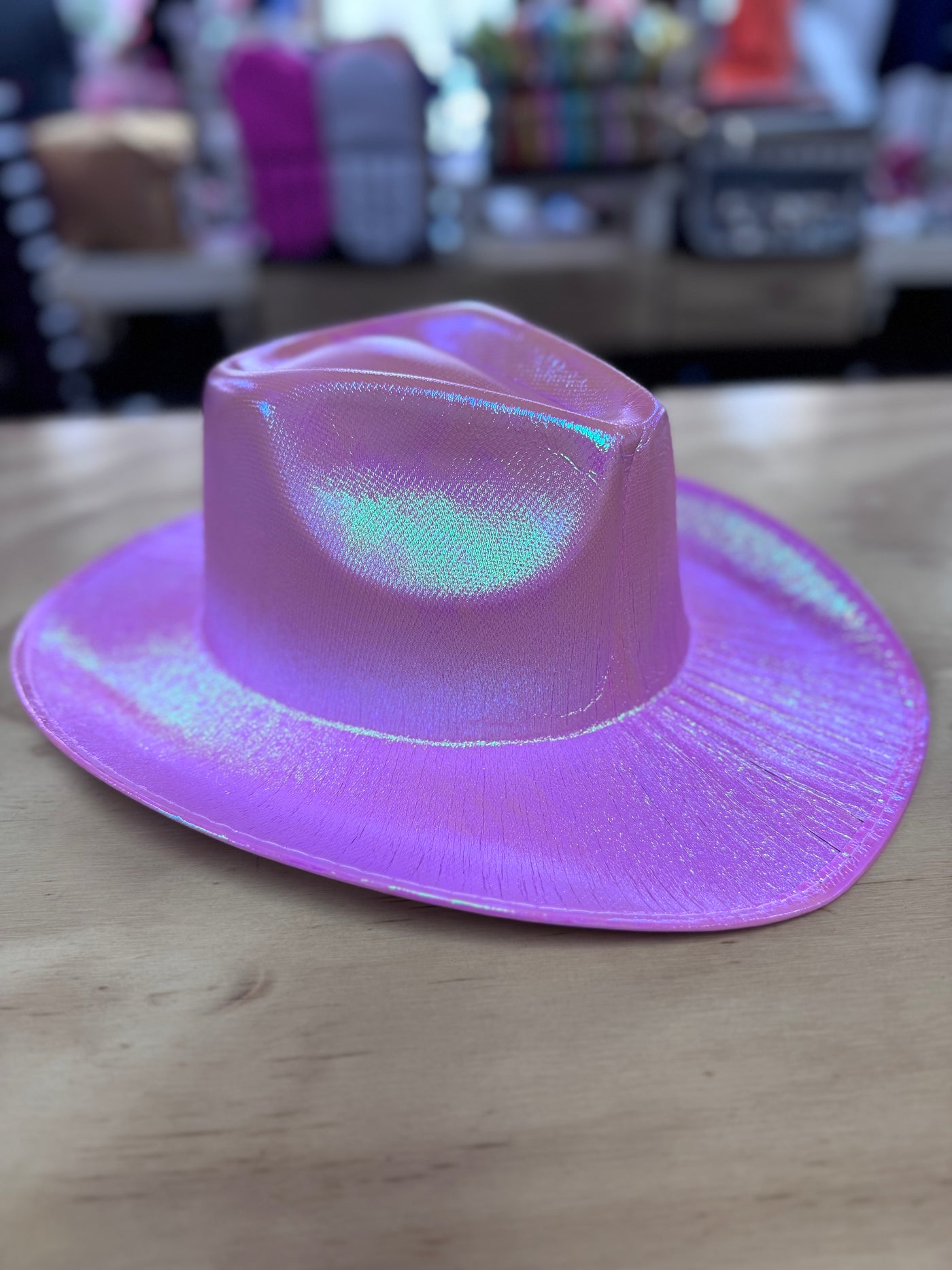 Saddle up in style with our Cowboy Metallic Hats in Pink! This shiny hat adds a touch of glamour to any western look. Perfect for rodeos, festivals, or just showing off your cowgirl sass. Yeehaw!