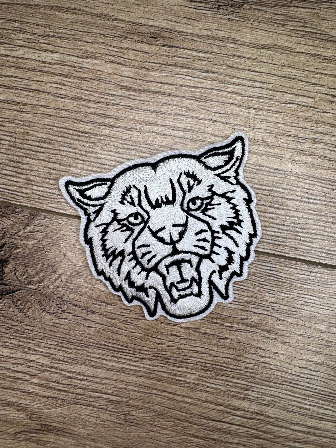Hat Patches (Embroidered)- "Wildcat Mascot" White & Black (3X3)