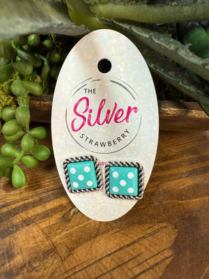"Roll the dice with these fun and stylish Powell Earrings! Featuring turquoise dice-shaped beads and a braided wrap design, these earrings are perfect for adding a playful touch to any outfit. Take a chance and show off your unique style."