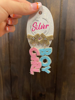 Sugar Crush Earrings- "Boy or Girl; Rhinestone Bow"